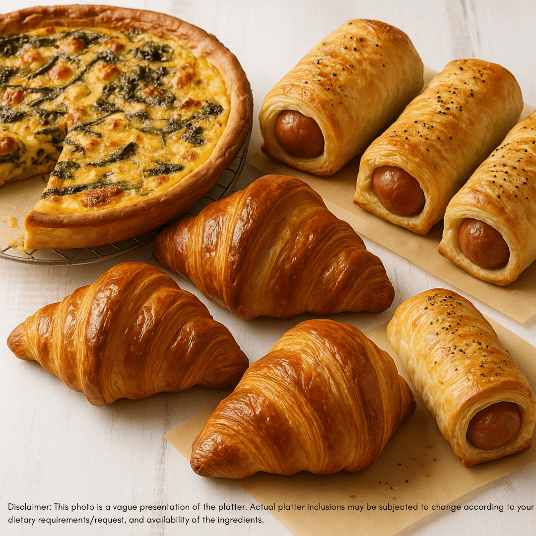 Assortment of Quiches, Sausage Rolls, & Croissants